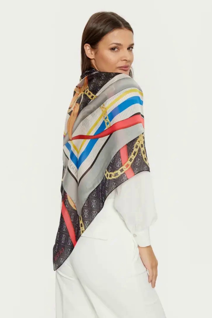 Designul este completat de imprimeu decorativ si logo Guess, care adauga un plus de stil si autenticitate. Datorita versatilitatii sale, esarfa Guess AW5270 este ideala pentru tinute casual, elegante sau pentru a adauga un accent stilat unei tinute minimaliste.
