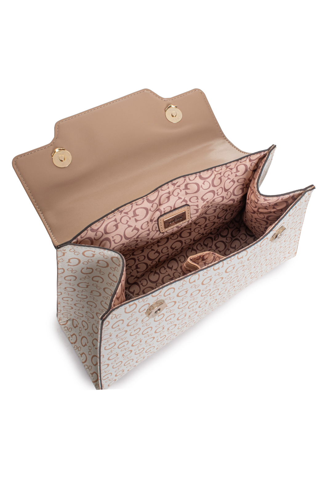 Modelul este realizat din piele ecologica (poliuretan) de calitate, material rezistent si usor de intretinut, care ofera un aspect premium. Textura cu logo sau model monogram Guess si elementele metalice elegante evidentiaza identitatea vizuala a brandului.
