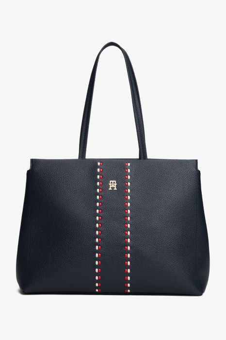 Modelul este realizat din poliuretan de calitate, un material rezistent si usor de intretinut, care ofera un aspect premium si durabilitate in timp. Designul gentii este completat de detalii cu logo Tommy Hilfiger si elemente metalice elegante, care subliniaza identitatea brandului.