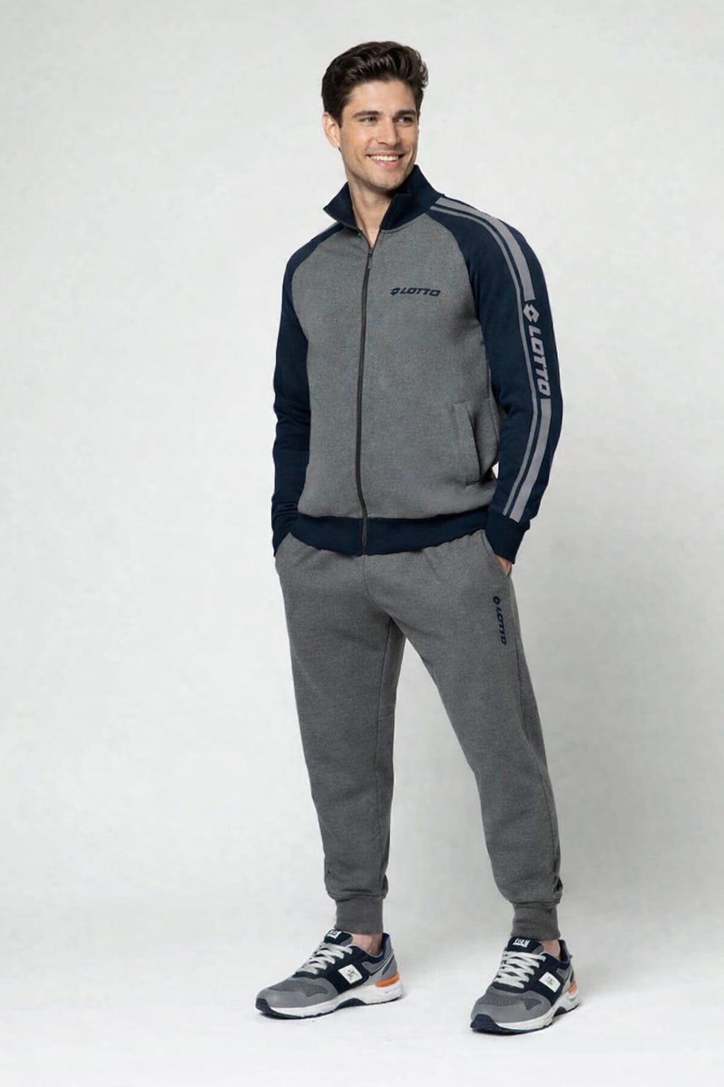 Treningul pentru bărbați Lotto LA2036 este alegerea ideală pentru cei care caută confort și stil sportiv într-un singur produs. Setul este compus din bluză cu fermoar și pantaloni, fiind potrivit atât pentru activități sportive ușoare, cât și pentru purtare zilnică. Designul modern, completat de detalii contrastante și logo Lotto aplicat, oferă un aspect dinamic și versatil.