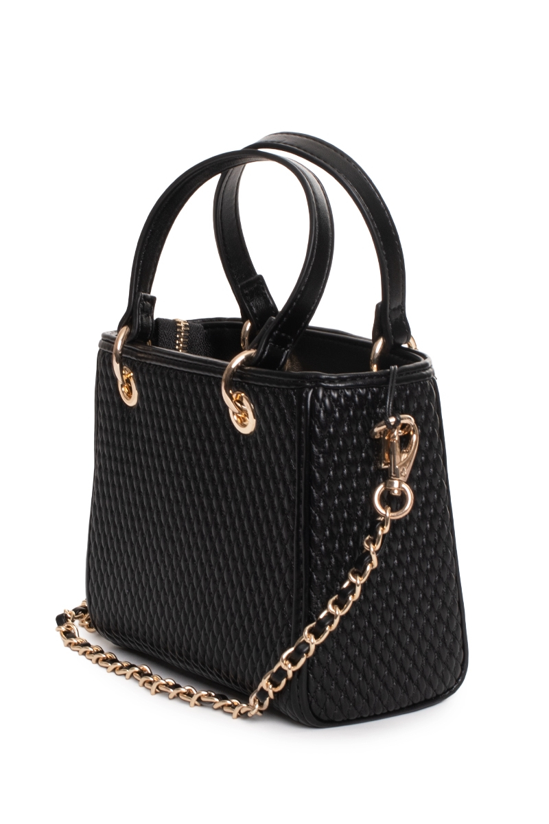 Geanta de damă Mario Valentino VBS9FI03 este un model compact, cu design structurat și elegant, evidențiat prin textura matlasată pe întreaga suprafață. Forma geometrică bine definită îi oferă un aspect modern, potrivit pentru ținute casual sau smart-casual.