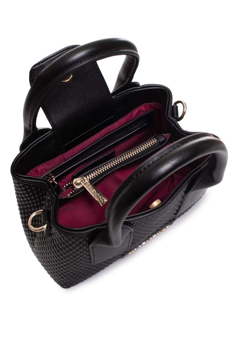 Geanta de damă Mario Valentino VBS9FI04 este un model compact, cu design elegant și feminin, evidențiat prin textura matlasată fină pe întreaga suprafață.