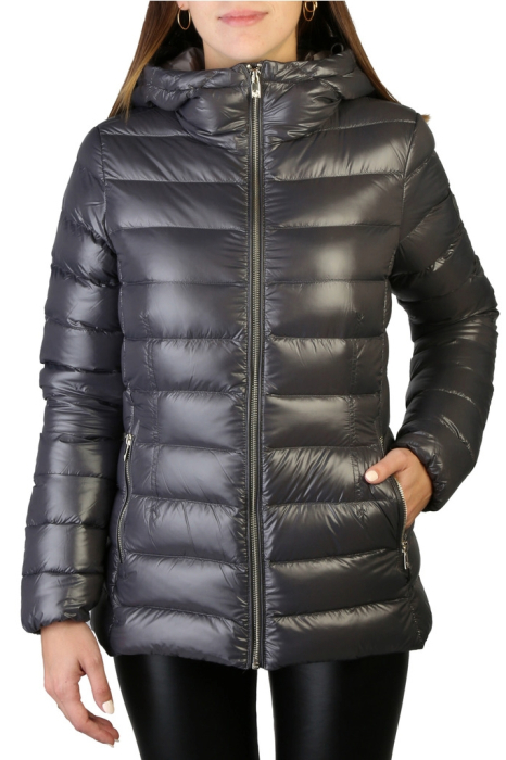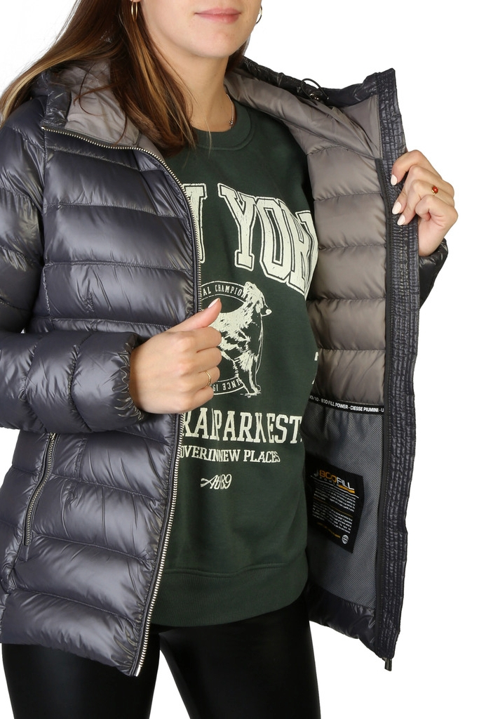 The design includes an integrated hood, ideal for additional protection against wind and low temperatures. The durable front zipper closure ensures a secure and practical fit, while the modern cut adapts harmoniously to the feminine silhouette.