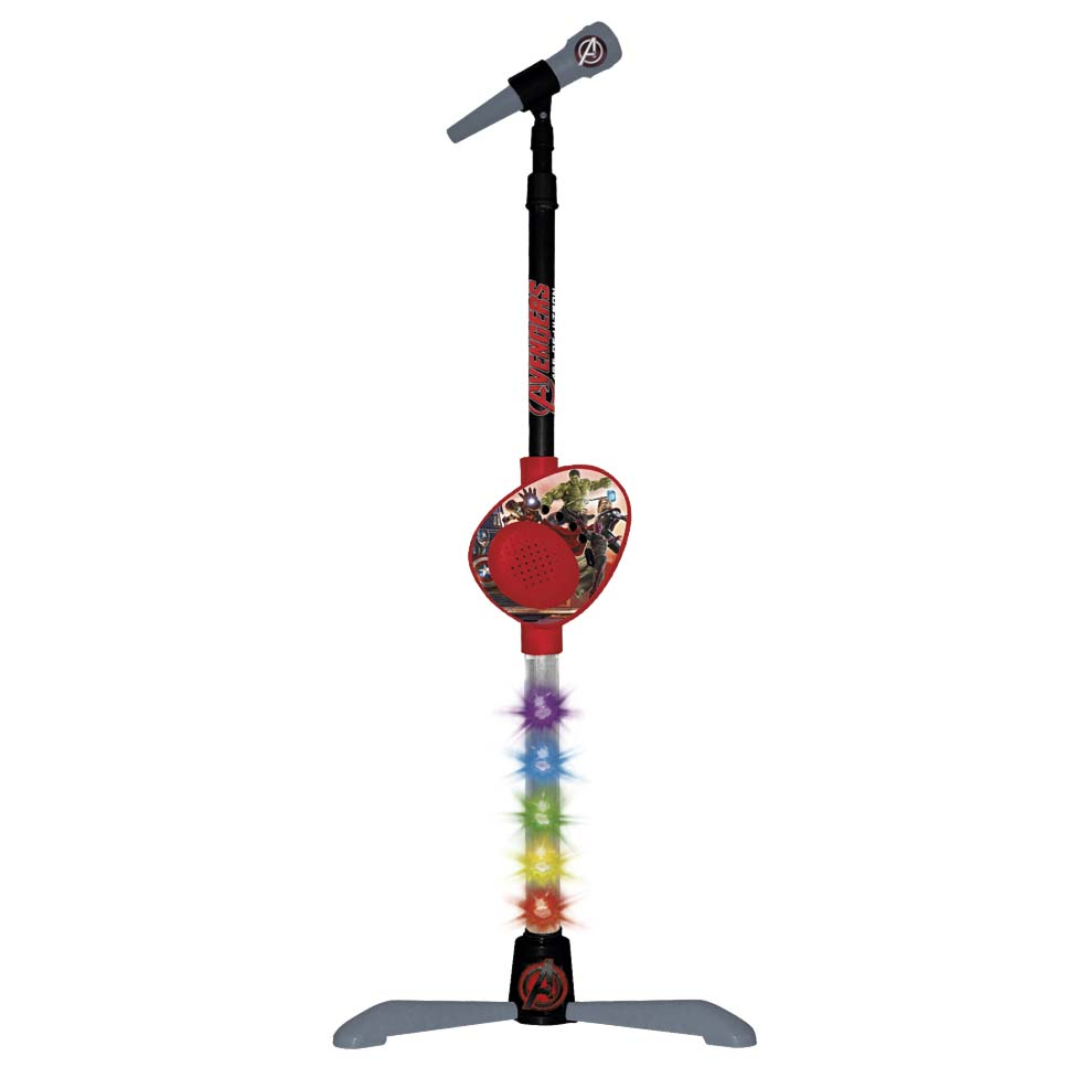 Microfon pe suport cu amplificator, intrare de linie pentru conectarea mp3, portabila sau alta sursa audio, melodii, aplauze, lumini, functioneaza cu 3 baterii LR6 / AA, neincluse.