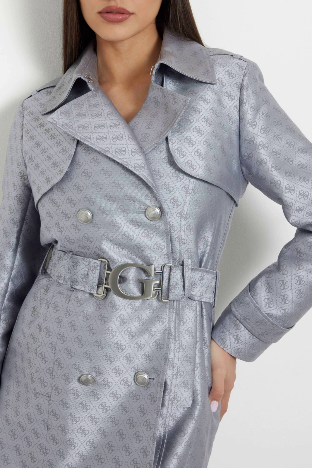 The Guess W3YL03 women’s printed trench coat is an elegant and modern wardrobe piece, perfect for transitional seasons. The model combines the classic trench coat style with a contemporary design, making it ideal for women who want to stand out with a sophisticated look.