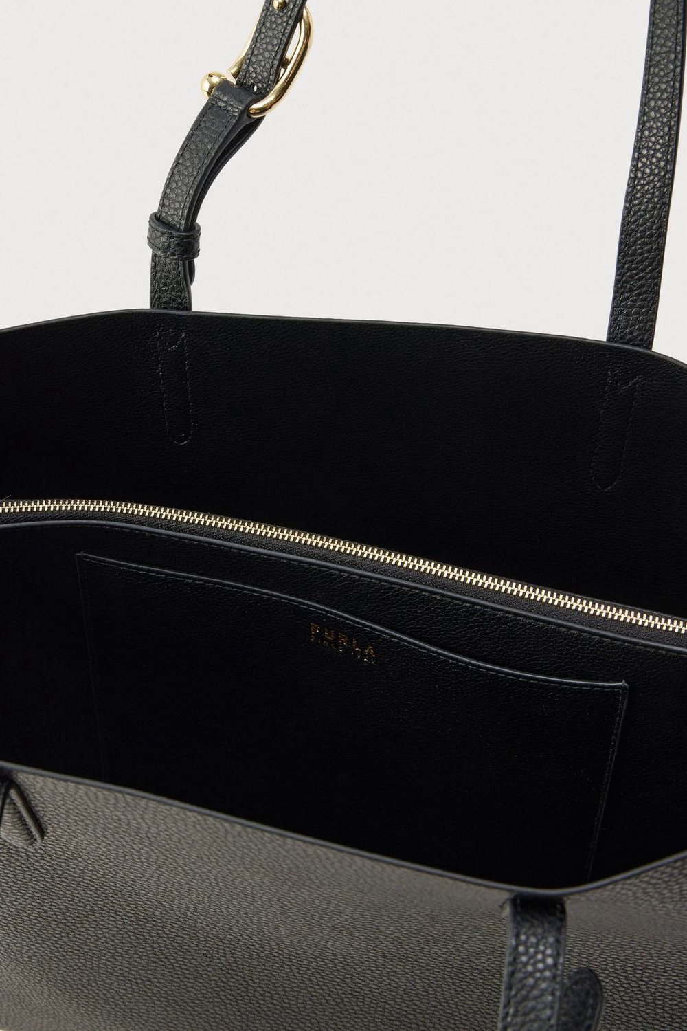 Designul este completat de logo-ul Furla aplicat discret, element care evidentiaza autenticitatea si stilul elegant al brandului italian. Manerele sau cureaua reglabila permit purtarea confortabila in mana, pe umar sau crossbody, in functie de preferinte.