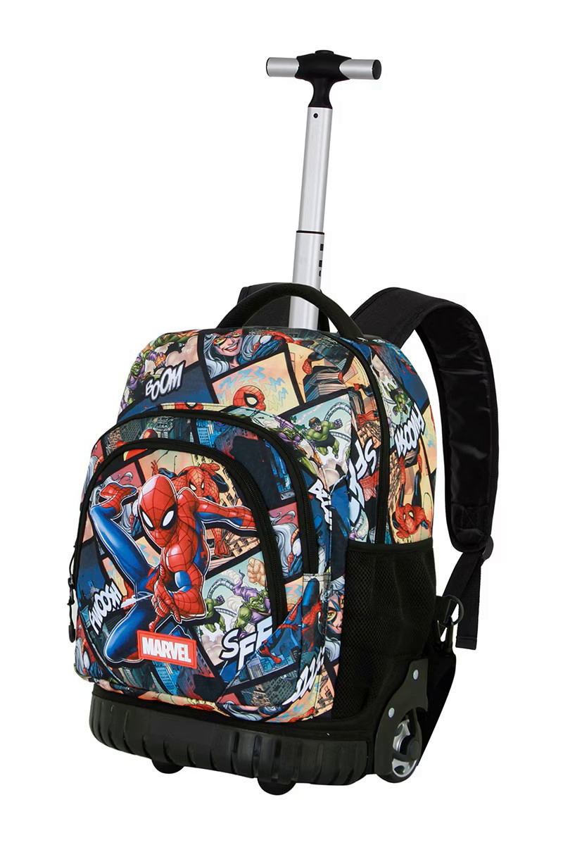 Ghiozdan Troler GTS FAN Spiderman Panels. Ghiozdan Troler de scoala cu 2 roti integrate. Doua compartimente, un buzunar frontal si doua buzunare laterale din plasa. Interior captusit cu buzunar captusit pentru dispozitive electronice. Curele de umar de purtat ca rucsac.