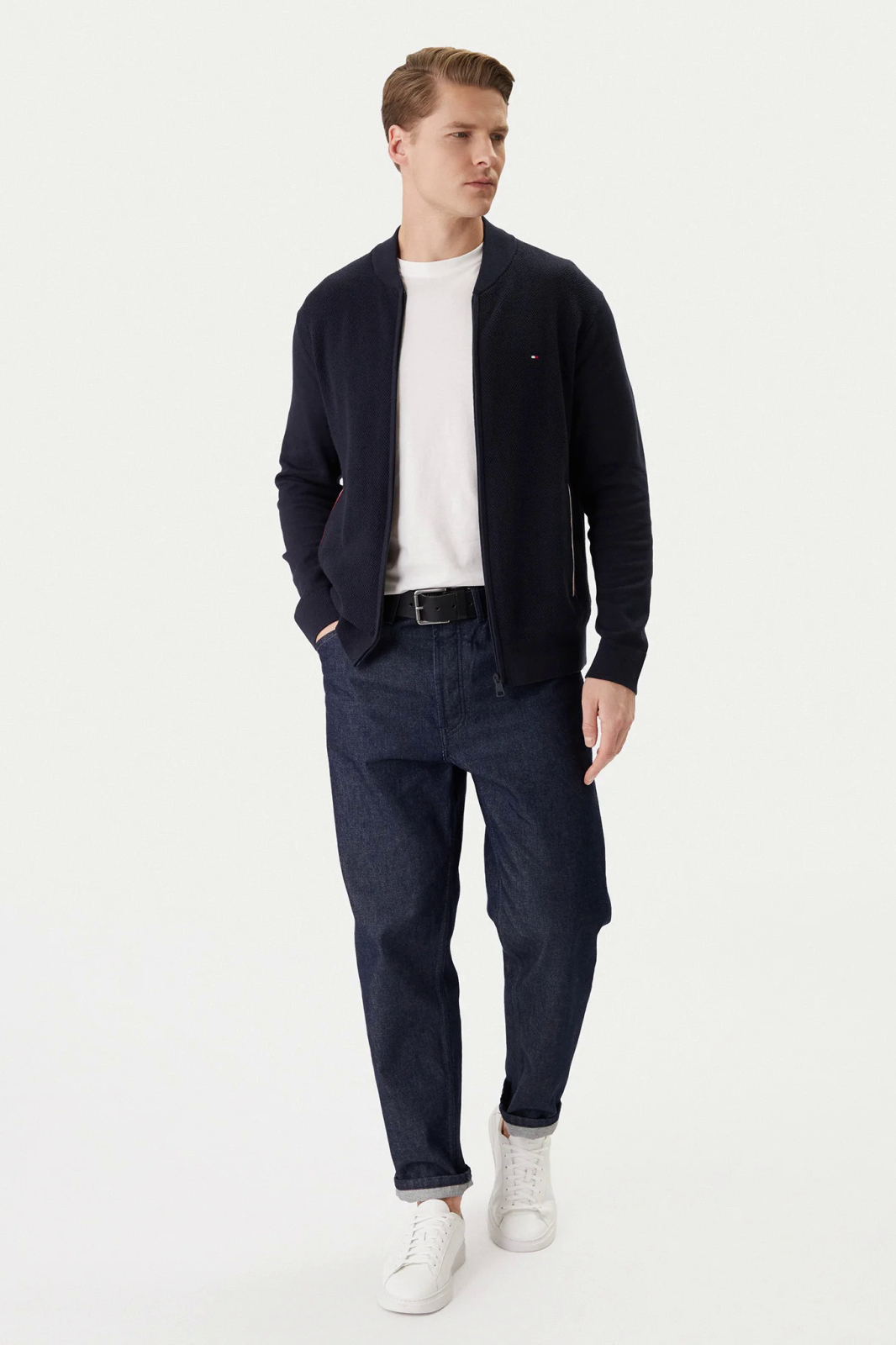 Cardiganul pentru bărbați Tommy Hilfiger MW0MW41543 este o piesă versatilă și elegantă, ideală pentru un stil modern și rafinat. Designul contemporan este evidențiat de textura discretă și de detaliile contrastante de la buzunare, completate de logo-ul iconic brodat pe piept.