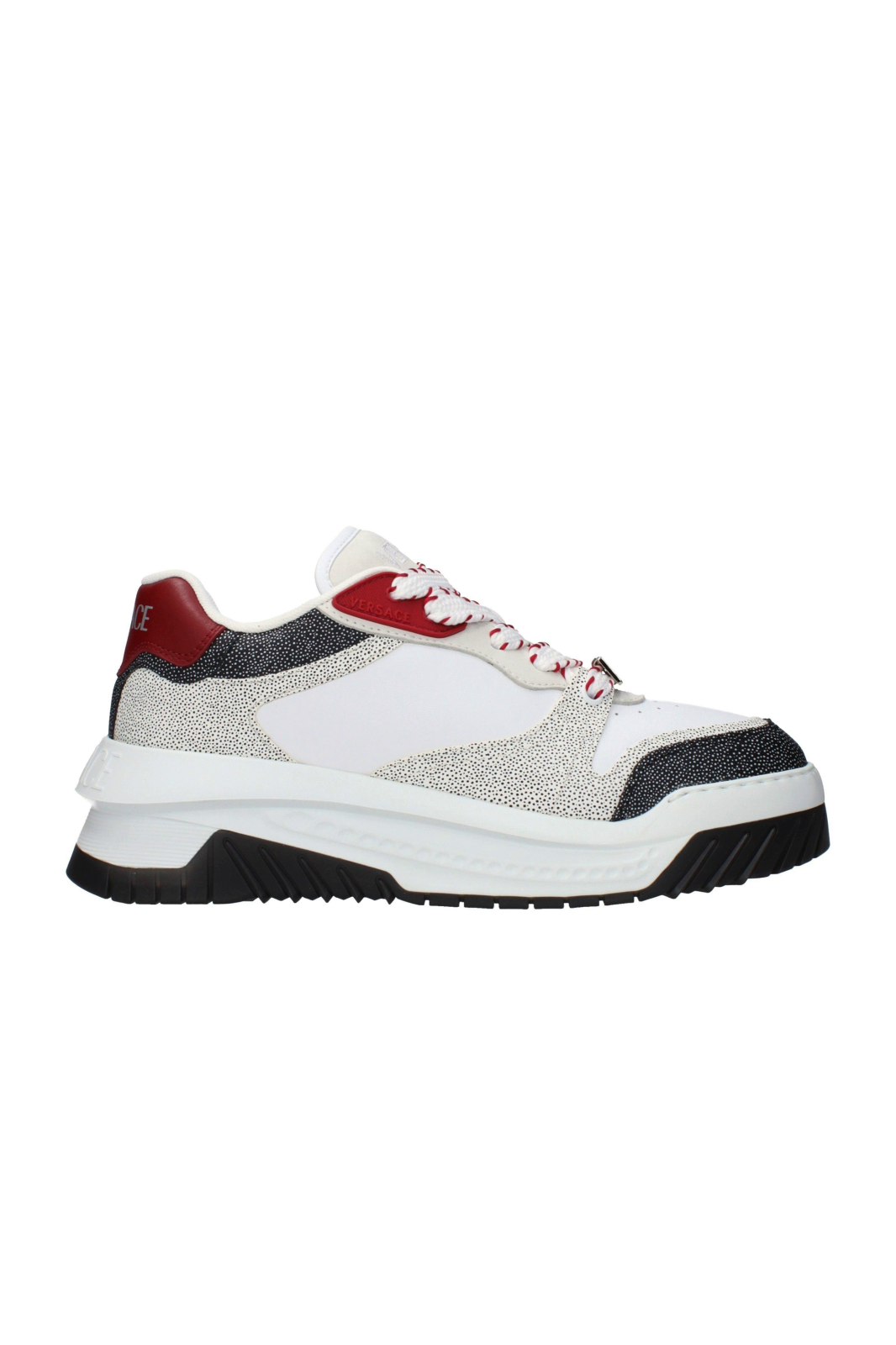 Partea superioara din piele asigura sustinere si rezistenta, in timp ce designul modern este completat de detalii distinctive Versace, care evidentiaza identitatea exclusivista a brandului. Finisajele atent realizate contribuie la un look elegant si contemporan.